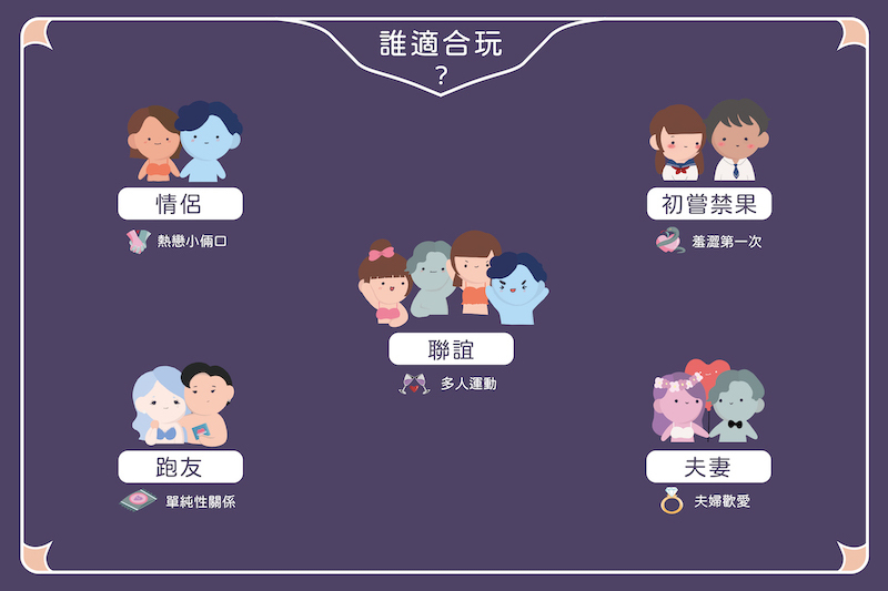 這是一套適合所有人、所有身份、所有關係的情慾卡牌遊戲,或者...你可以先找到玩遊戲的對象,再用吊人胃口的《遊慾》把他變成下列的關係!