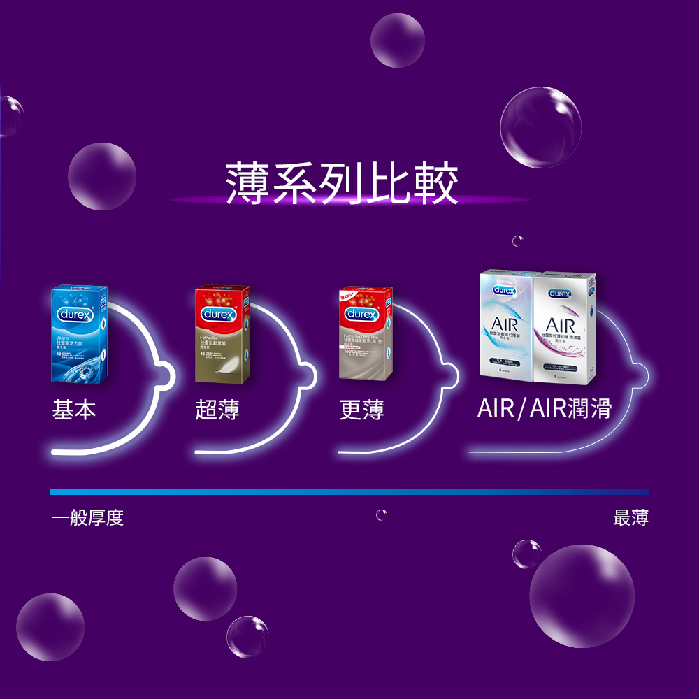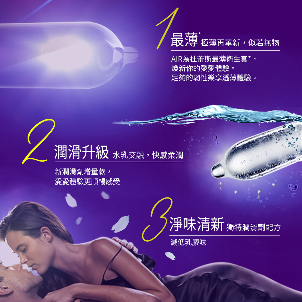 ◎AIR輕薄幻隱裝是目前杜蕾斯衛生套品類中最薄的產品