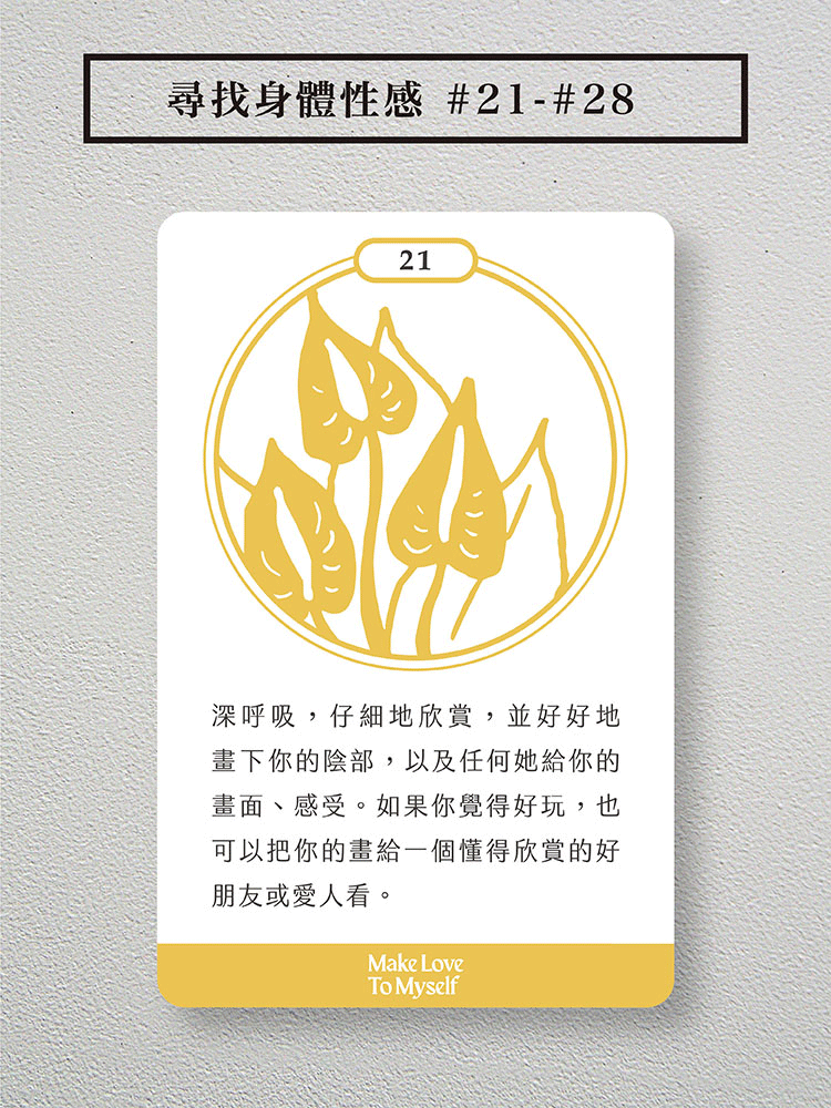 內含 40 種與自己的親密體驗牌卡 + 一份指引手冊 + 三組引導音檔,